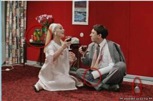 Мы нашли на нем три фотоляпа: Дарт Вейдер на фото, бутылка под стулом, и четвертый сверху слева человек.