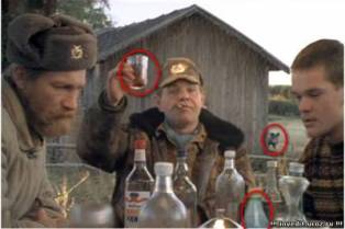 Лишним является бутылка русской водки на столе.