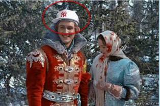 Фотоляпом здесь является кепка фирмы "Ньюйорк Янкис" на голове главного героя.