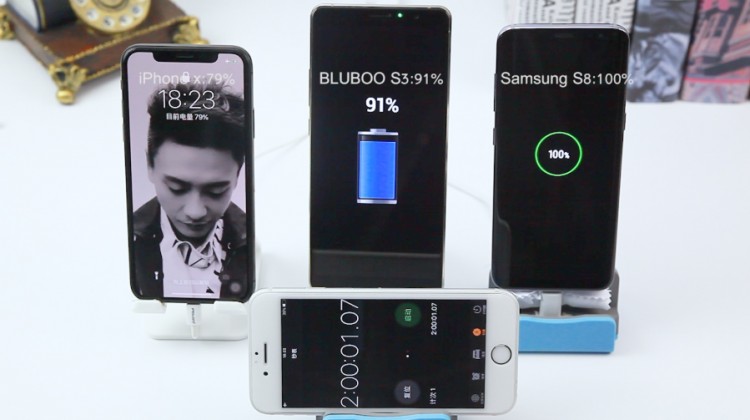 Bluboo S3 - сравнение автономности и скорости зарядки с Galaxy S8 и iPhone X
