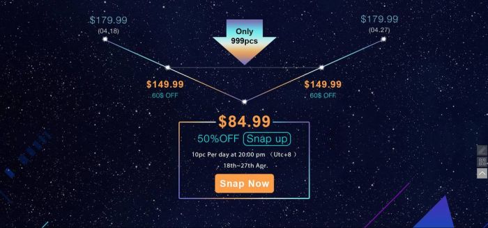 Итак, со вчерашнего дня производитель запустил акцию, которая продлится с 18 по 27 апреля. Первые 999 клиентов смогут обзавестись устройством всего за 149.99 долларов вместе с подарками на 50 долларов (это OTG адаптер, адаптер для наушников и кабель Type-C для подзарядки других гаджетов). Более того, каждый день два первых случайных покупателя получат девайс бесплатно, а первые 10 – всего за 84.99 долларов (в 20:00 (UTC +8)). Не упустите свой шанс! Также следите за другими предложениями компании на официальном сайте Bluboo.
