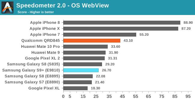 Результаты Snapdragon 845, как видите, не сильно впечатляют, особенно на фоне Apple A11. И вообще немного комично выглядит то, что топовый процессор Exynos начала 2018 года идет вровень с процессором Apple 2016 года, а Snapdragon845 пасет задних .