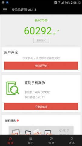 Как уже было сказано, новая модель процессора Qualcomm Snapdragon 625 способна выдавать отличные результаты в синтетических тестерах, взять тот же Антуту-бенчмарк. Еще до выхода Galaxy C7, его результаты производительности утекли в сеть, где он демонстрировал все те же 60 000+ очков, чего должно с головой хватить для современного мира и мобильных игрушек. Новая оболочка TouchWiz более легкая и не такая нагруженная ненужными программами, поэтому телефон будет шустро переключаться по меню и быстро запускать программы, и игры. Учитывая целых 4 ГБ ОЗУ на борту, можно с уверенностью сказать, что тормозить, зависать или вылетать (из-за нехватки ОЗУ) ничего не будет, причем еще не один год. Для сравнения, похожей мощностью обладает Mediatek Helio X10 (стоит в Xiaomi Redmi Note 3).