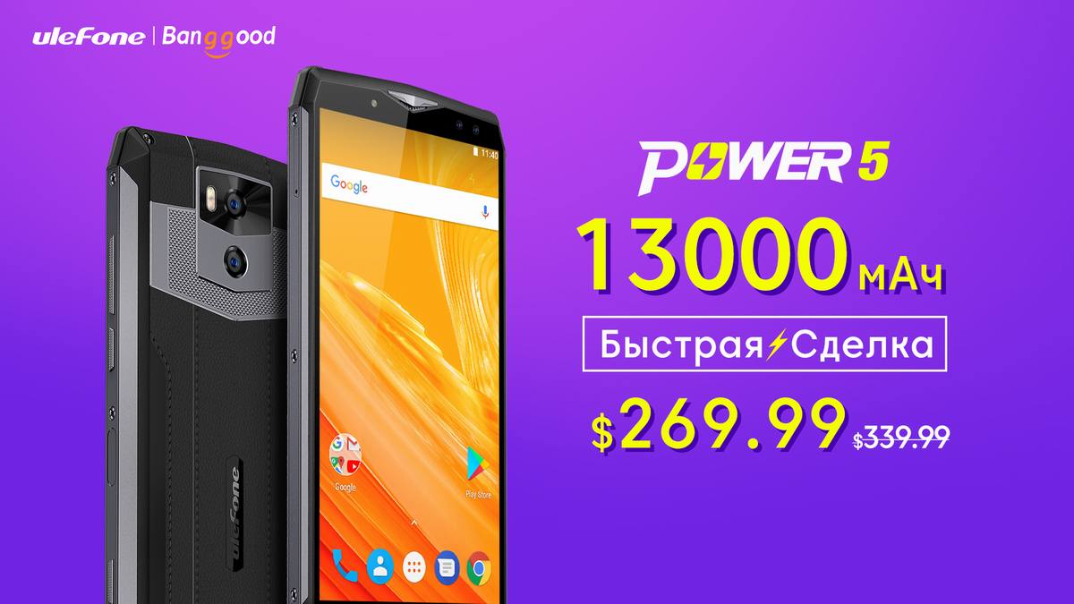 Нам постоянно мало зарядки, мало энергии, поэтому чаще всего люди покупают смартфоны с большой аккумуляторной батареей или идут на ухищрения, приобретая повербанки. А что если мы расскажем вам о телефоне-повербанке, этаком универсальном решении, которое способно работать и как обычный смартфон, и как внешняя батарея. Нет, это не какое-то чудо инженерии, просто компания Ulefone решила создать смартфон с самой большой батареей в мире, емкостью 13000 мАч. Китайский бренд даже подал заявку в Книгу Рекордов Гиннеса, дабы зафиксировать действительно необычный девайс. Мощная батарея, не стыдное железо и производительность, двойная камера от Sony, большой широкоформатный сочный дисплей - что еще можно желать от весьма компактного, мобильного гаджета. Но это не все, поскольку компания Ulefone решила сделать подарок всем покупателям, предложив существенную скидку на свой девайс. Хотите получить автономность на уровне 7 дней при активном использовании смартфона? Тогда поспешите оформить предварительный заказ аппарата на онлайн-площадке Banggood, где Ulefone Power 5 продается всего 270 долларов (обычная цена равняется 340 долларам).