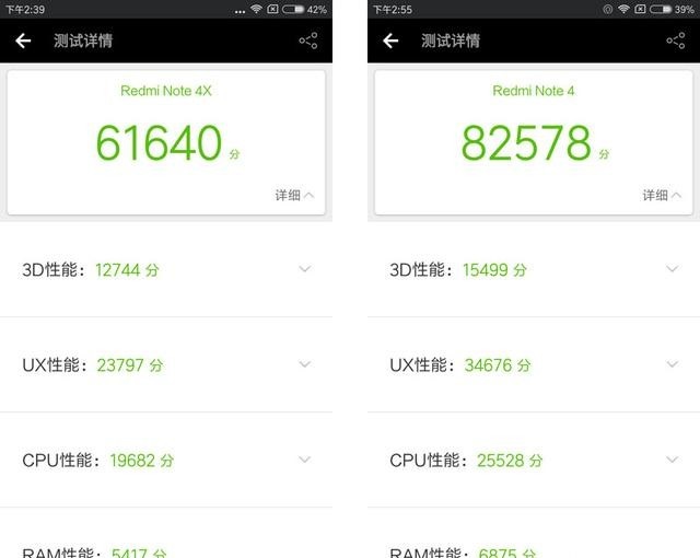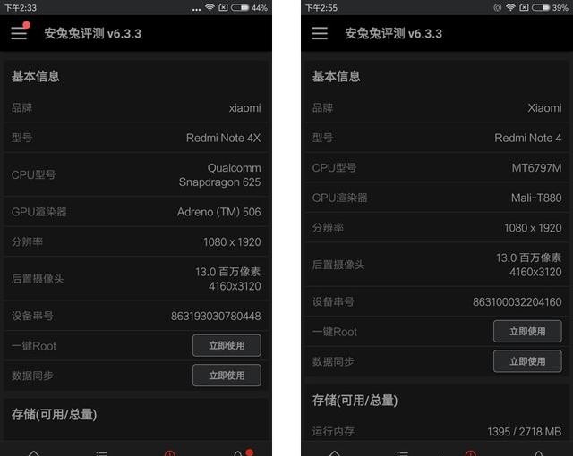 Еще одно важное отличие между смартфонами Сяоми – это процессор. В этой паре смартфонов столкнулись лицом к лицу два враждующих лагеря процессоров – МедиаТек и Снапдрегон. На Xiaomi Redmi Note 4X установлен восьмиядерный Snapdragon 625 с максимальной тактовой частотой 2 ГГц, а на Xiaomi Redmi Note 4 – десятиядерный Helio X20 с максимальным разгоном до 2.1 ГГц. Если смотреть на синтетику, то Helio X20 вместе с Xiaomi Redmi Note 4 на голову выше, чем Xiaomi Redmi Note 4X. Ниже мы прикладываем скриншот с результатами синтетического теста Антуту. xiaomi redmi note 4 i 4x raznica androidphones.ru 05.jpg.pagespeed.ce.eE8CyKHzqV