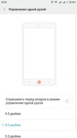 Xiaomi Redmi Note 4X – это довольно большой смартфон. 5.5 дюймов всё-таки. Если у большинства мужчин еще получиться справиться со смартфоном одной рукой, то для девушек – это очень непростая задача. В смартфонах Сяоми данный режим реализован не самым удобным и логичным способом: экран уменьшается до размеров (4.5'', 4.0'', 3.5'') в нижний правый угол. Для того чтобы перевести смартфон в этот режим вам нужно просто провести пальцем по кнопкам «Домой», « Меню», «Все приложения» - и Xiaomi Redmi Note 4X предложит вам перейти в режим управления одной рукой. Всё лаконично и понятно.ymenshenie ekrana
